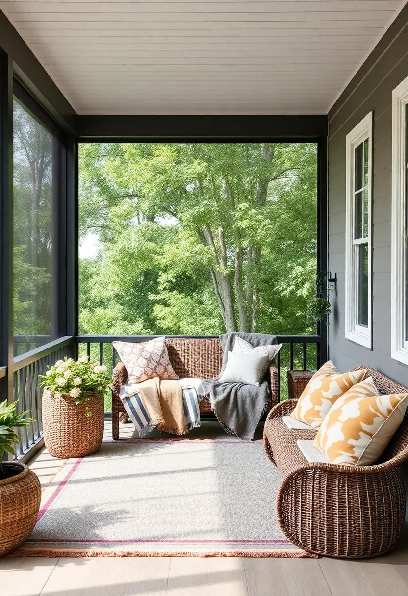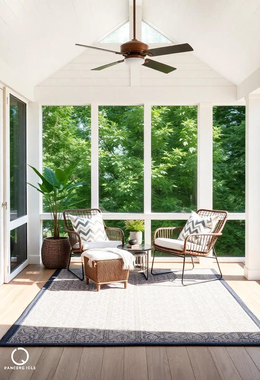 transform your screened porch into a haven of comfort and style by incorporating a statement rug or a cozy hangout chair. A bold rug can serve as the perfect foundation for your reading nook, creating a distinctive area that invites relaxation. Consider choosing a rug with vibrant colors or unique patterns, which not only adds visual interest but also helps define the space. Opt for materials like jute or soft cotton,which are both durable and pleasant to the touch,making your nook a welcoming escape.