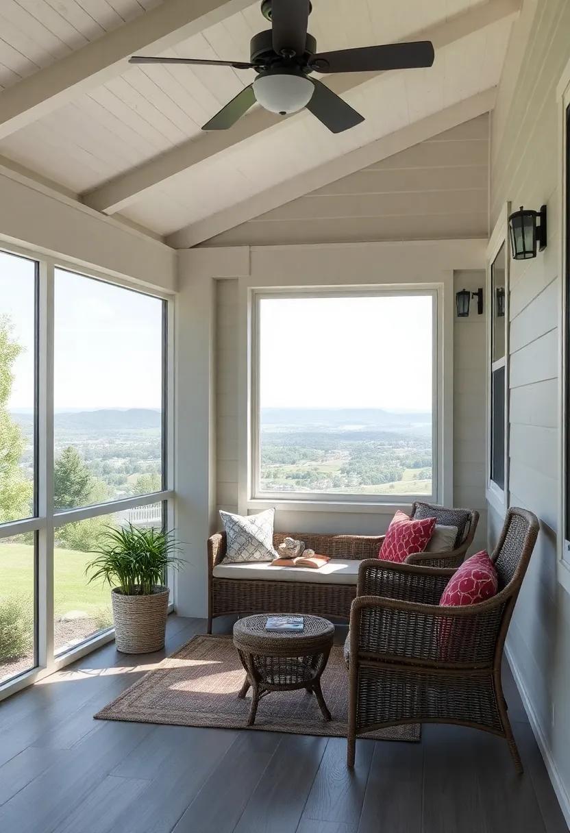 Creating a serene reading nook on your screened porch requires thoughtful furniture arrangement to ensure a harmonious flow. Positioning your seating to encourage conversation and relaxation is essential. Consider the following furniture placement tips: